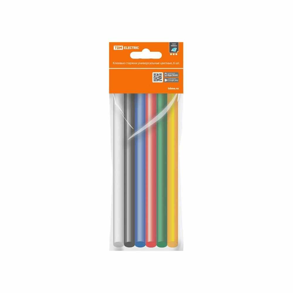 Купить Клеевые стержни универсальные цветные, 11 мм x 100 мм, набор 6 шт, "Алмаз" TDM