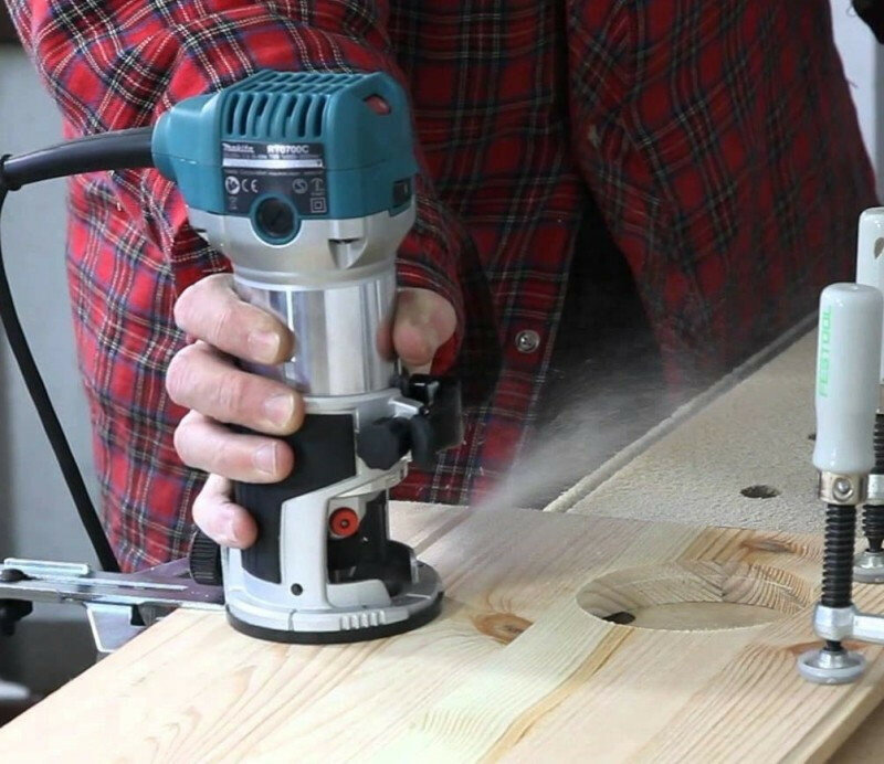 - Как погружной фрезер использовать проблематично (что не удивительно, ведь он кромочный) - На металлическом цилиндре процарапываются полосы при смене глубины - Площадка не везде круглая и по сторонам торчат всякие детали - можно зацепиться |