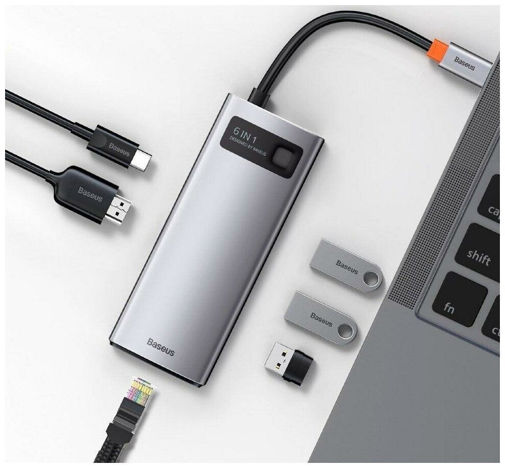USB-C хаб Baseus 6-in-1 Type-C HUB PD 100W 3USB/1USB-C/1Ethernet/1HDMI 4K 30Hz темно-серый (CAHUB-CW0G) интересное: