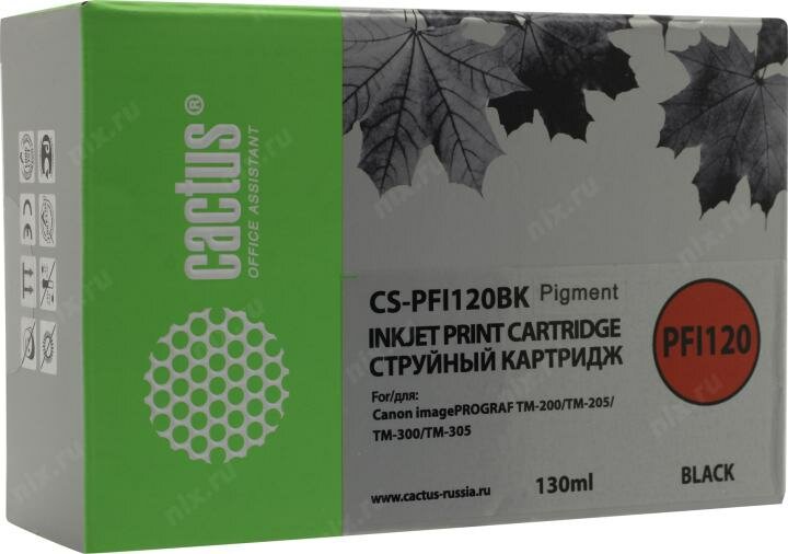 Ниже Вы можете прочитать отзывы на Картридж Cactus CS-PFI120BK, совместимый, черный, для Canon imagePROGRAF TM-200/TM-205/TM-300/TM-305, ознакомится с подробными характеристиками, посмотреть интересные обзоры и фотографии на Картридж Cactus CS-PFI120BK, совместимый, черный, для Canon imagePROGRAF TM-200/TM-205/TM-300/TM-305.