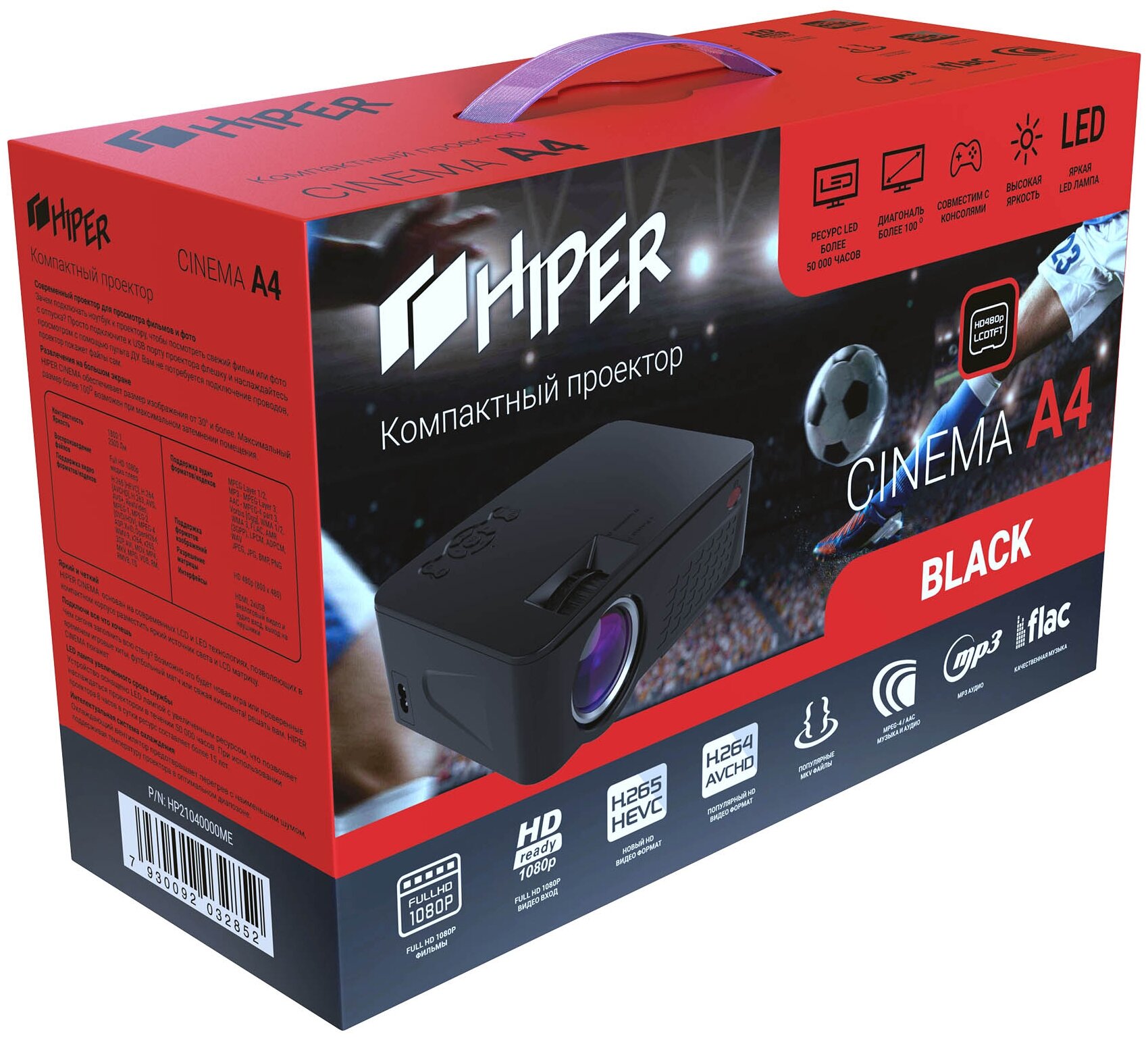 Купить Проектор HIPER CINEMA A4 BLACK (LCD, LED, WVGA 800x480, 2500Lm, 1800:1, HDMI, 2xUSB, 1x2W speaker, led 50000hrs, 1.0kg)