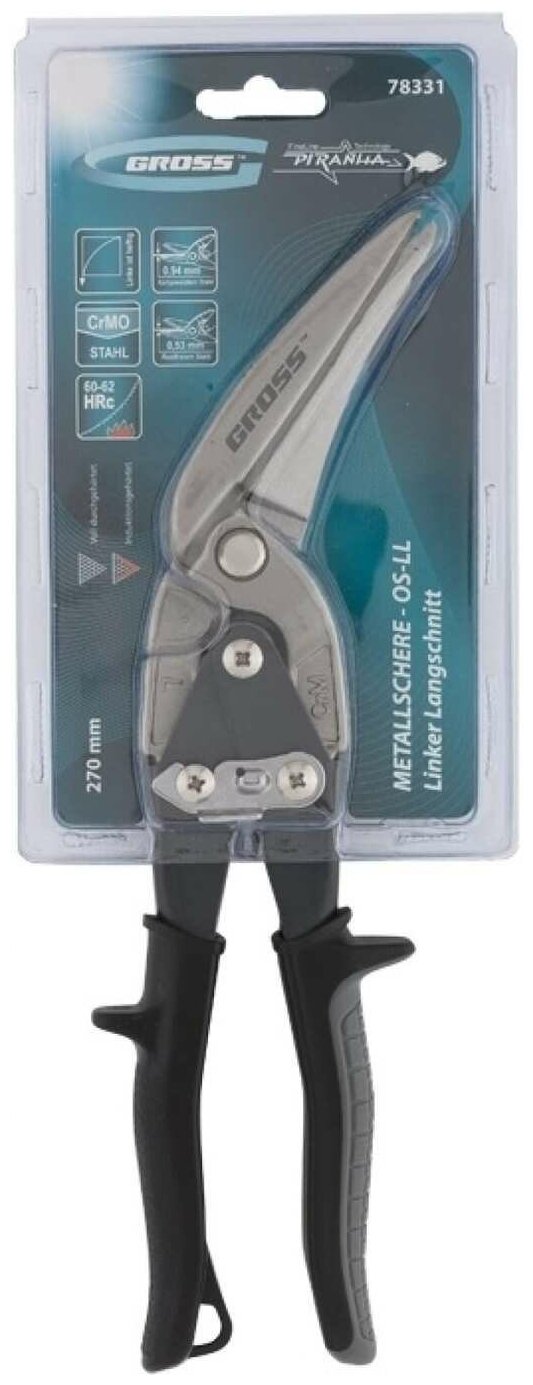 GROSS Ножницы по металлу "Piranha", 270 мм, прямой и левый проходной рез, сталь СrMo, двухкомпонентные рукоятки Gross, ( 78331 )