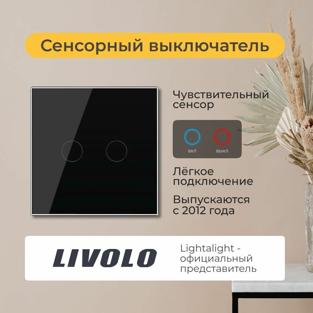 Купить VL-C702-12 Сенсорный выключатель Livolo 2 клавиши 1 пост Черный