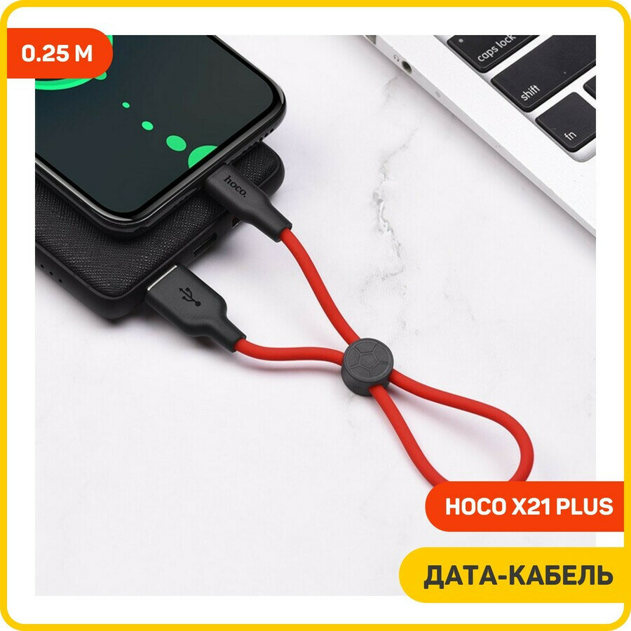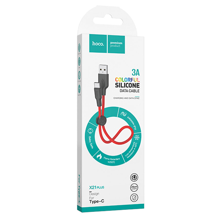 USB кабель HOCO X21 Plus Silicone Type-C, 3А, 0.25м, силикон (красный/черный)