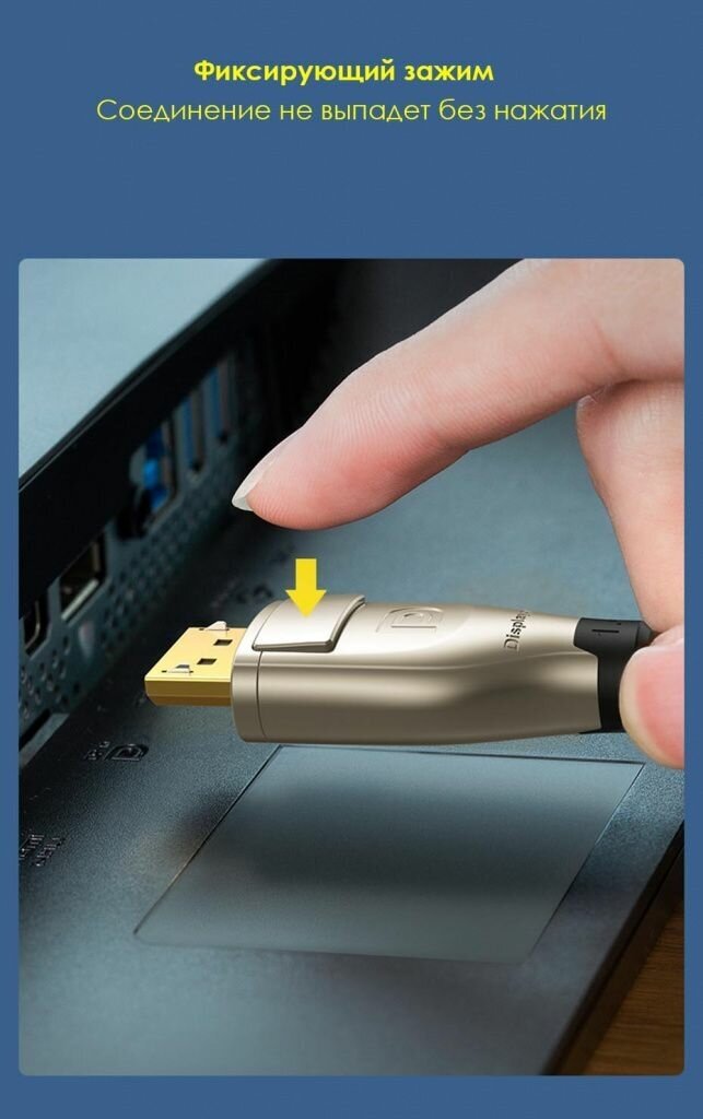| Плюсы: | Качественный провод, хорошая оплётка, защёлки на разъёмах, 240Hz 2k HDR завелось без проблем, поддерживает displayport 1.4 |