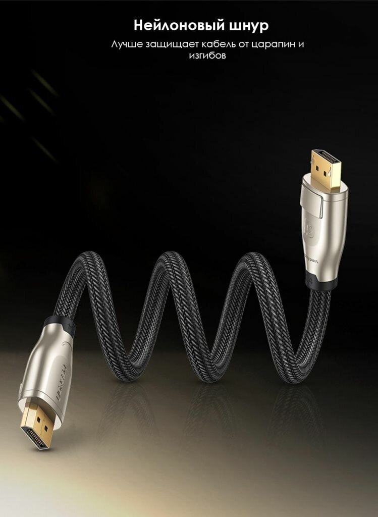 Кабель UGREEN DP112 (60842) DisplayPort v1.4 M/M 8K Round Cable Zinc Alloy Shell with Braided (1 метр) чёрный