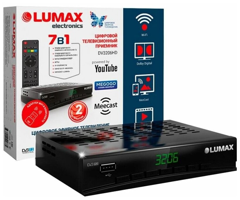Цифр.ТВ приставка Lumax Dv3206hd, Dvb-t2, Wi-Fi