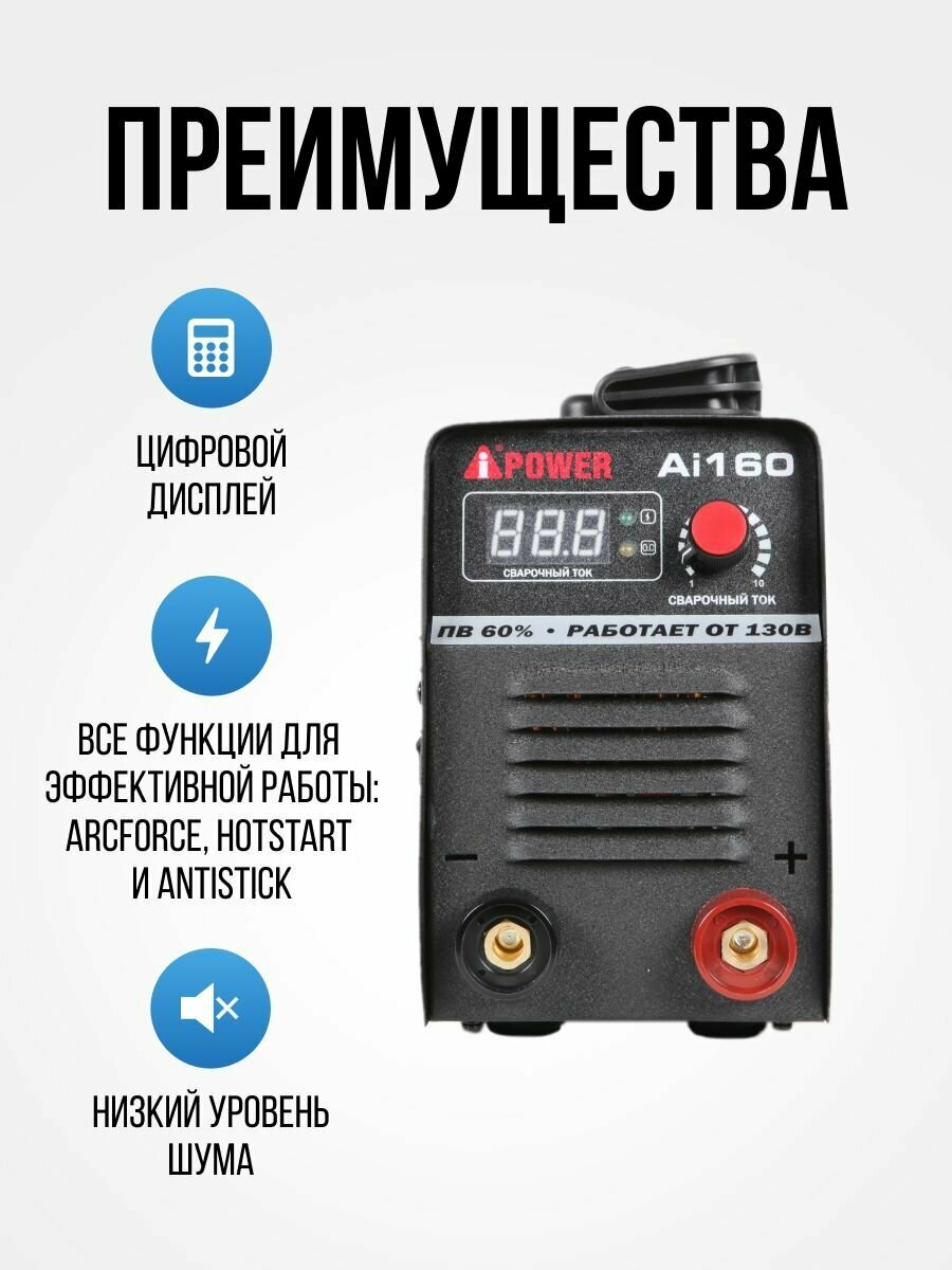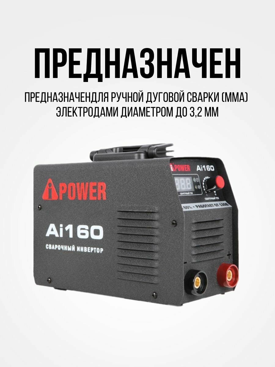 Инверторный сварочный аппарат A-iPower Ai160 220В 130А, 3,7кг, инвертор для MMA, ручной дуговой сварки