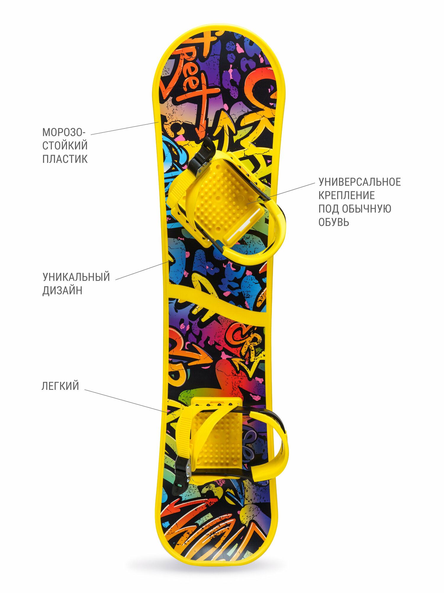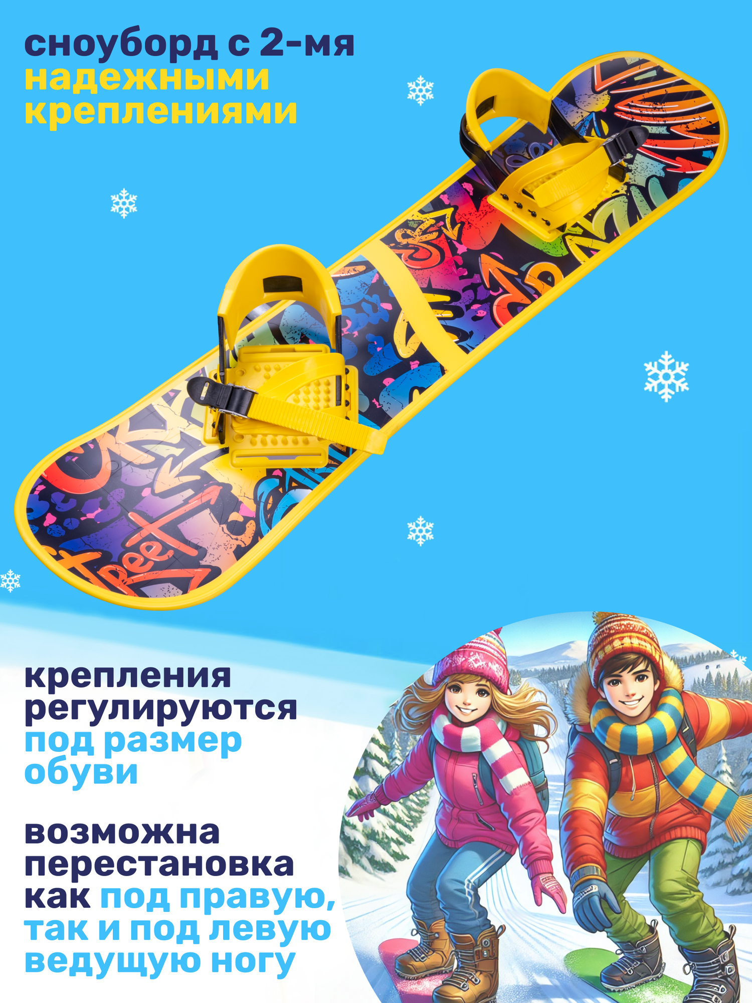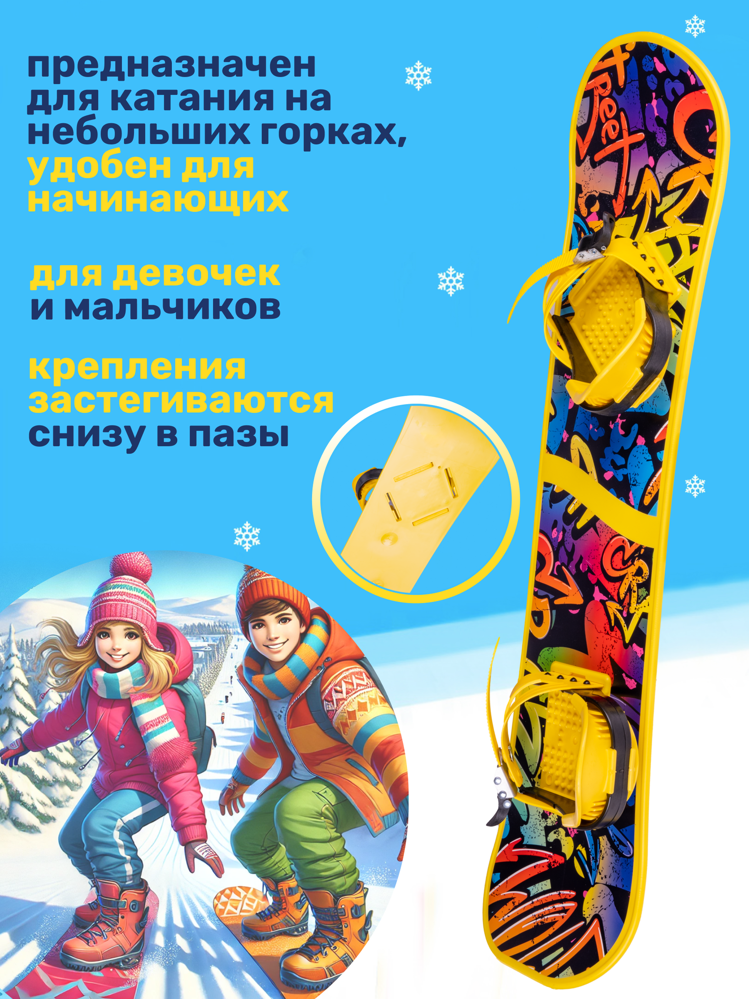 Сноуборд NovaSport детский пластиковый с креплением / Доска сноуборидическая для детей и подростков