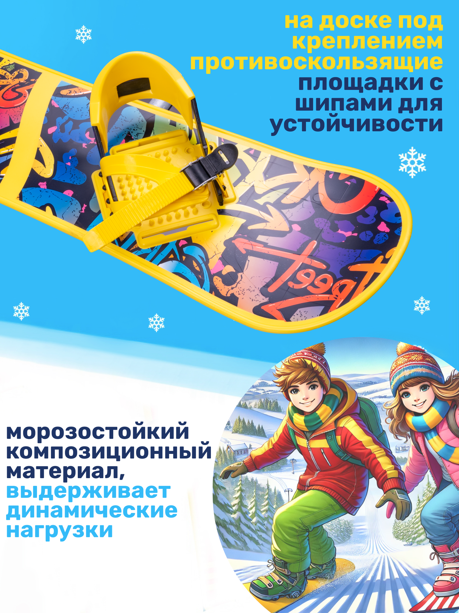 Сноуборд NovaSport детский пластиковый с креплением интересное: