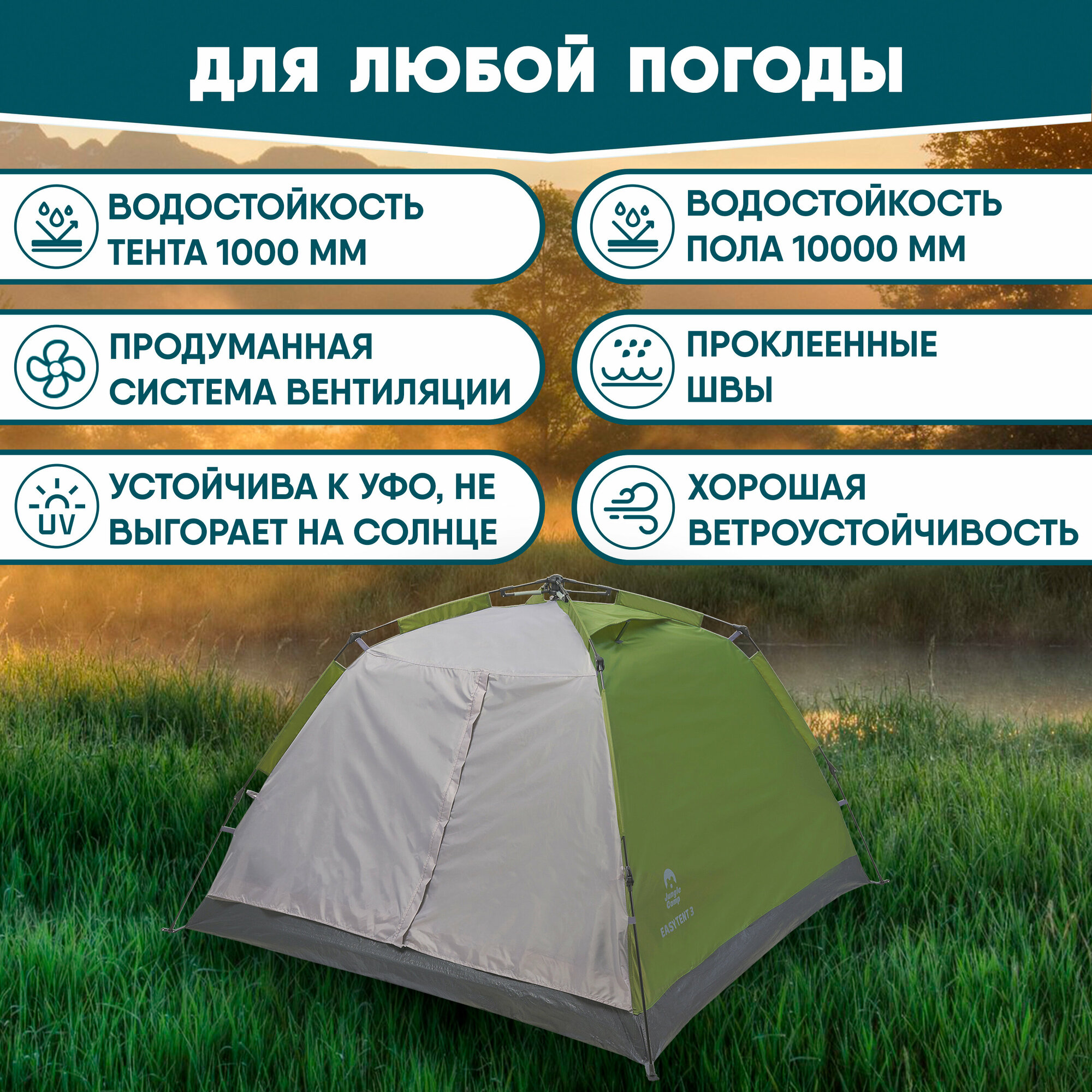 Палатка трехместная JUNGLE CAMP Easy Tent 3, цвет: зеленый/серый