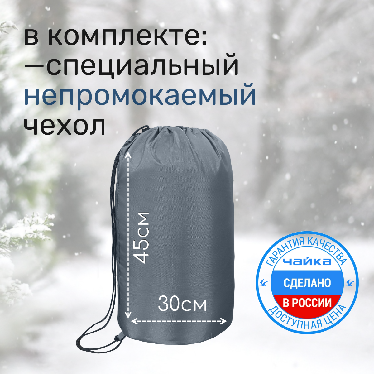 Спальный мешок Чайка, зимний "ARMY" 90х230см, утеплитель термофайбер 500г/кв. м.