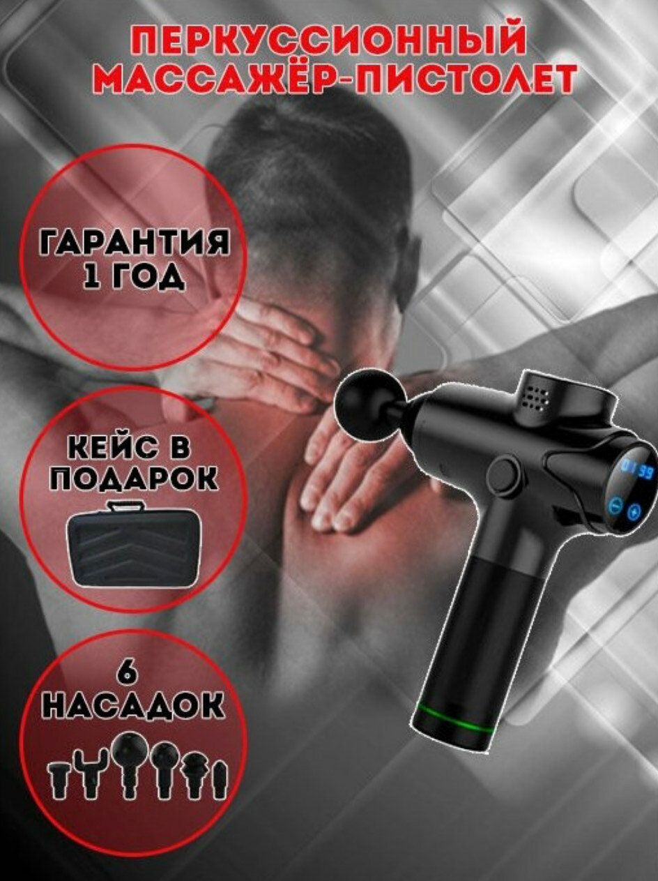 | Подробная комплектация | Массажный пистолет - 1 шт, насадки - 6 шт, инструкция на русском языке - 1 шт, кейс для хранения - 1 шт, кабель для зарядки - 1 шт |