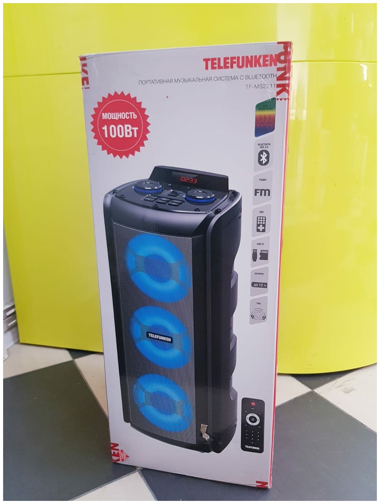 TELEFUNKEN Портативная колонка Telefunken TF-MS2211, 100 Вт, 3000 мАч, FM, BT, microSD, USB, подсветка