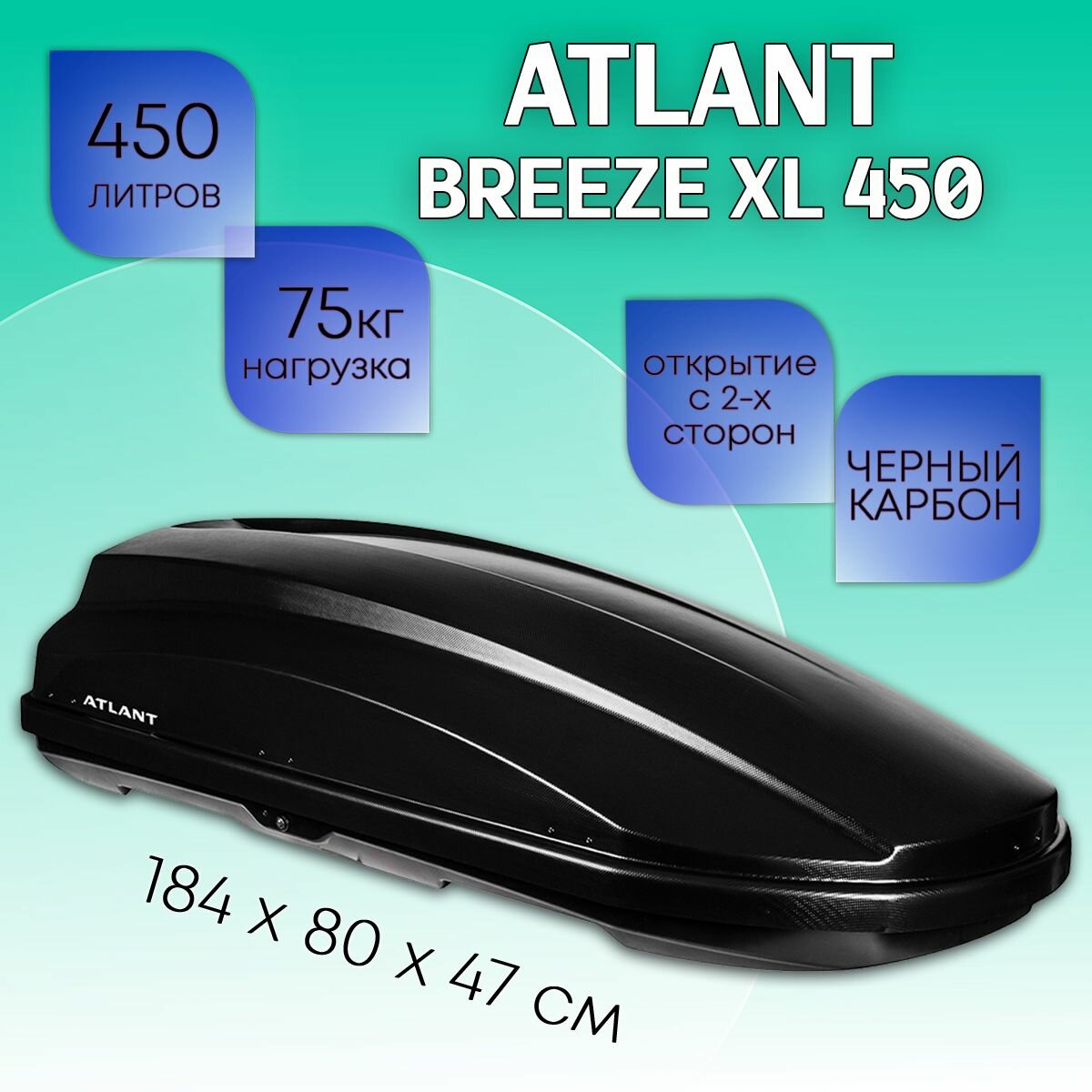 Бокс atlant breeze xl 450 (184*80*46) 450л, черный матовый, двухстороннее открывание, ATLANT 24513 (1 шт.)