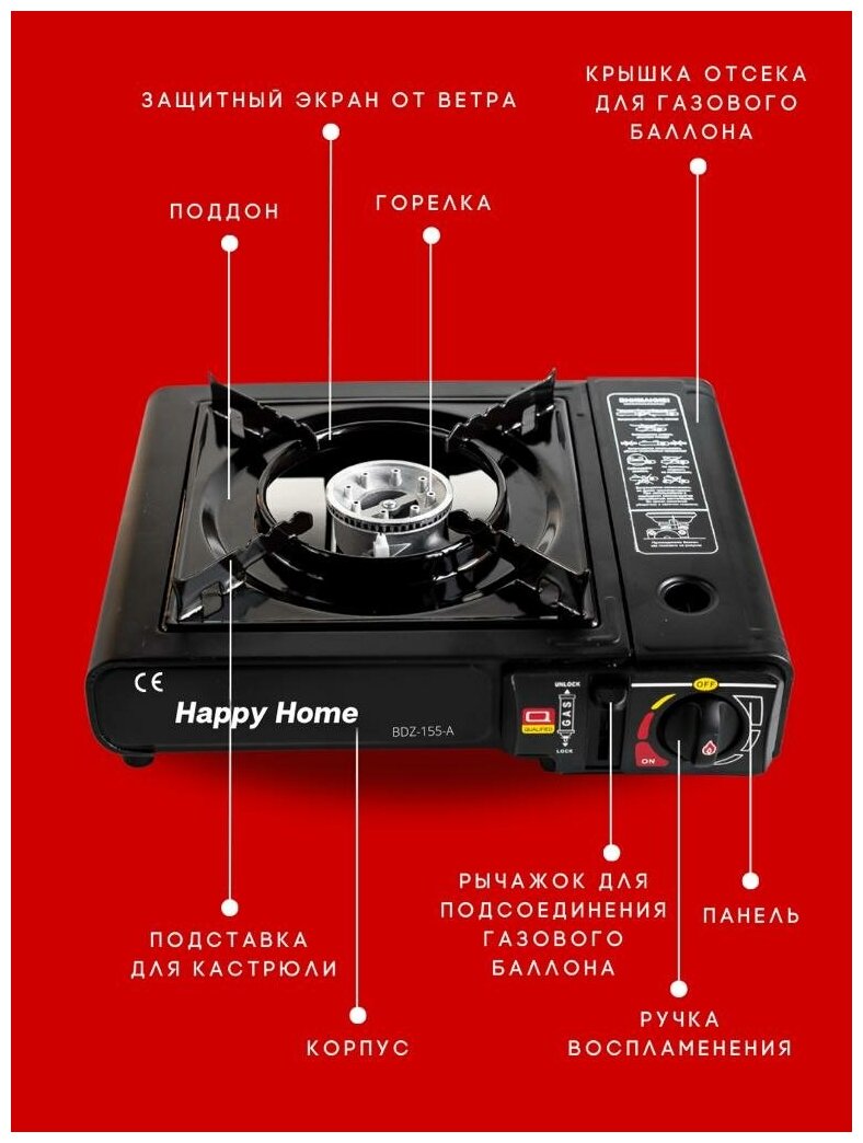 Плитка газовая портативная -туристическая ( походная ) настольная Happy home с кейсом интересное: