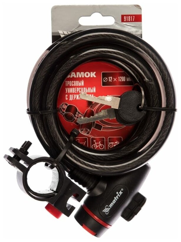 MATRIX 91817 Замок тросовый универсальный с держателем, 12x1200 мм MATRIX 91817 MATRIX 91817