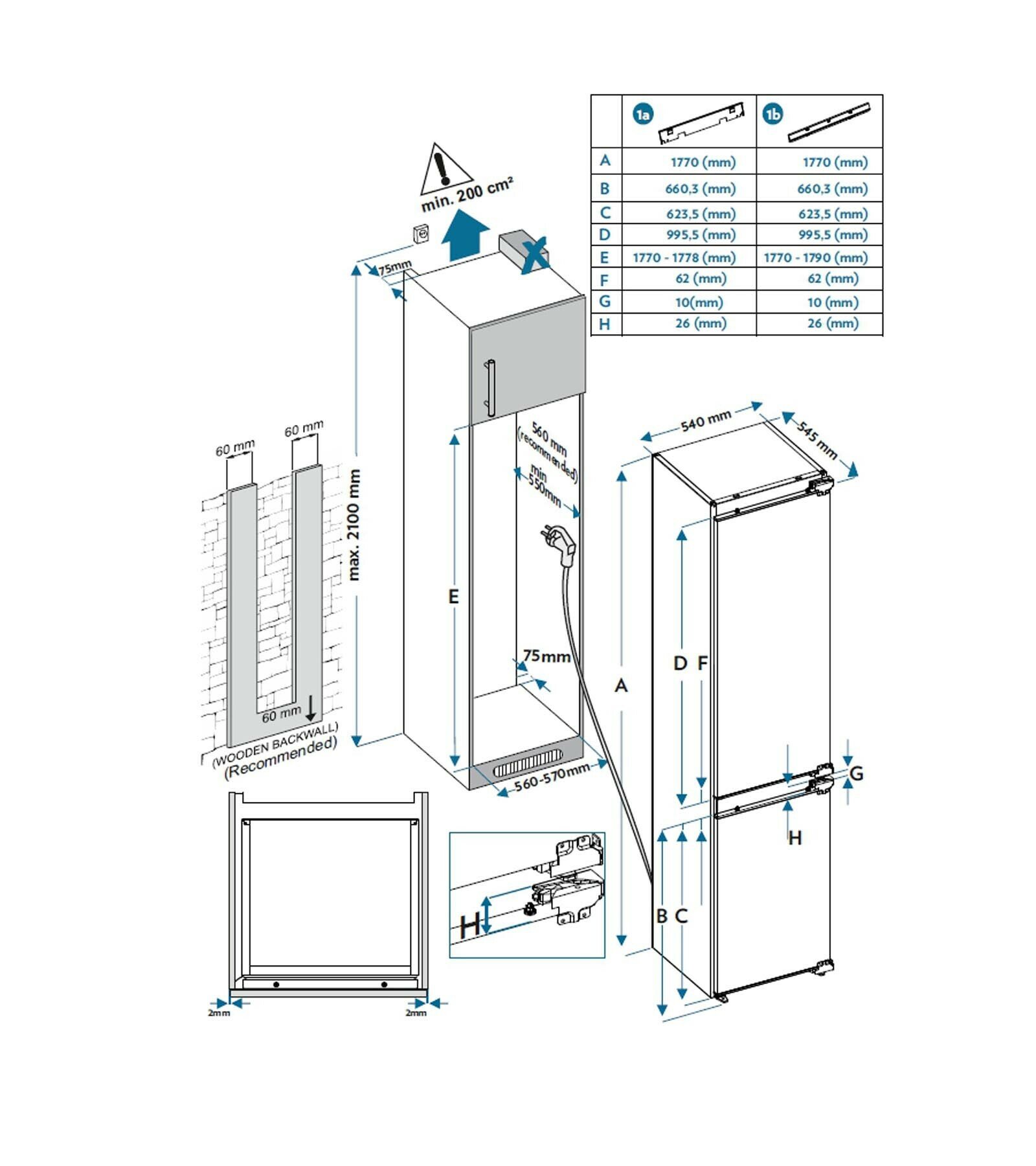 Встраиваемый однокамерный холодильник Jacky's JL BW1770