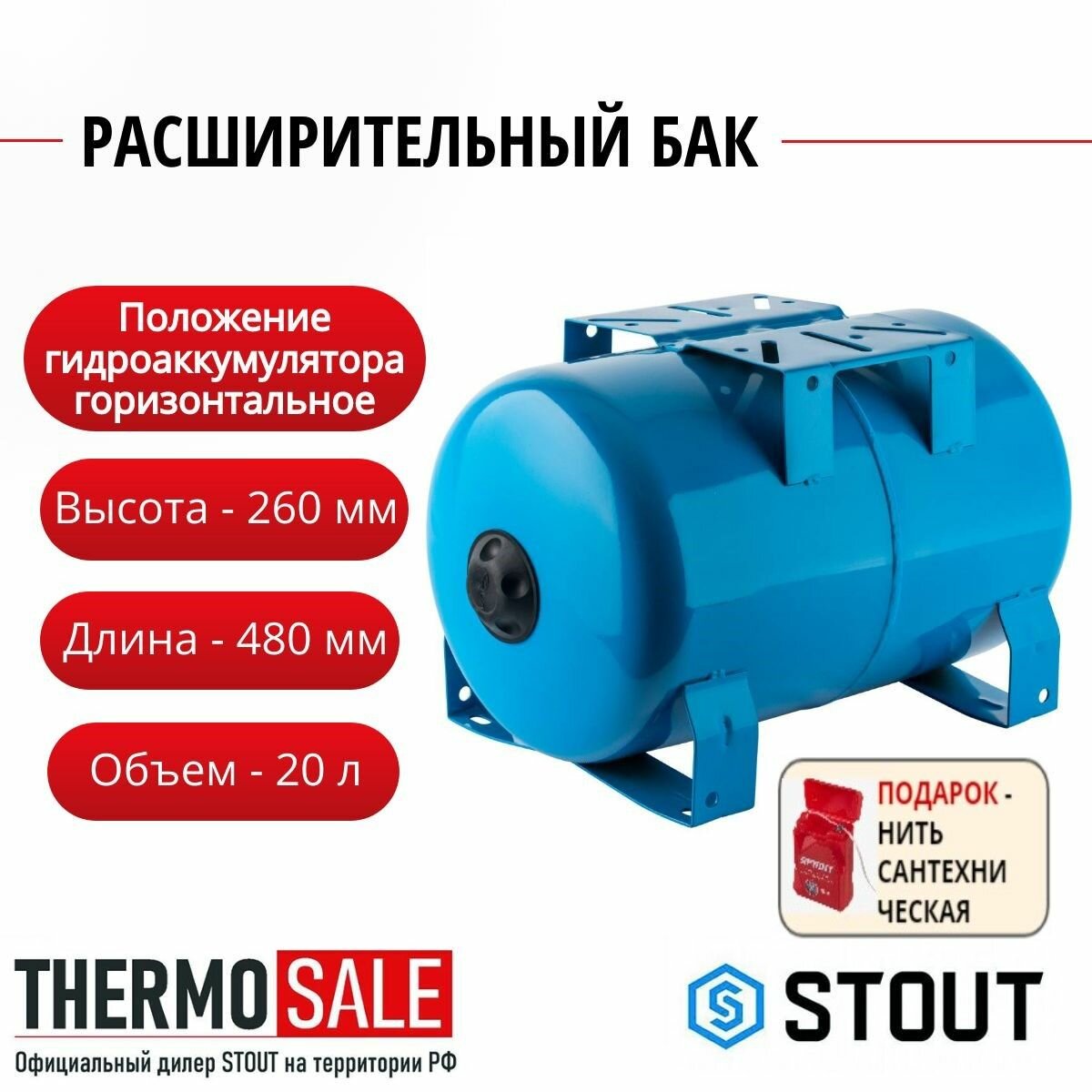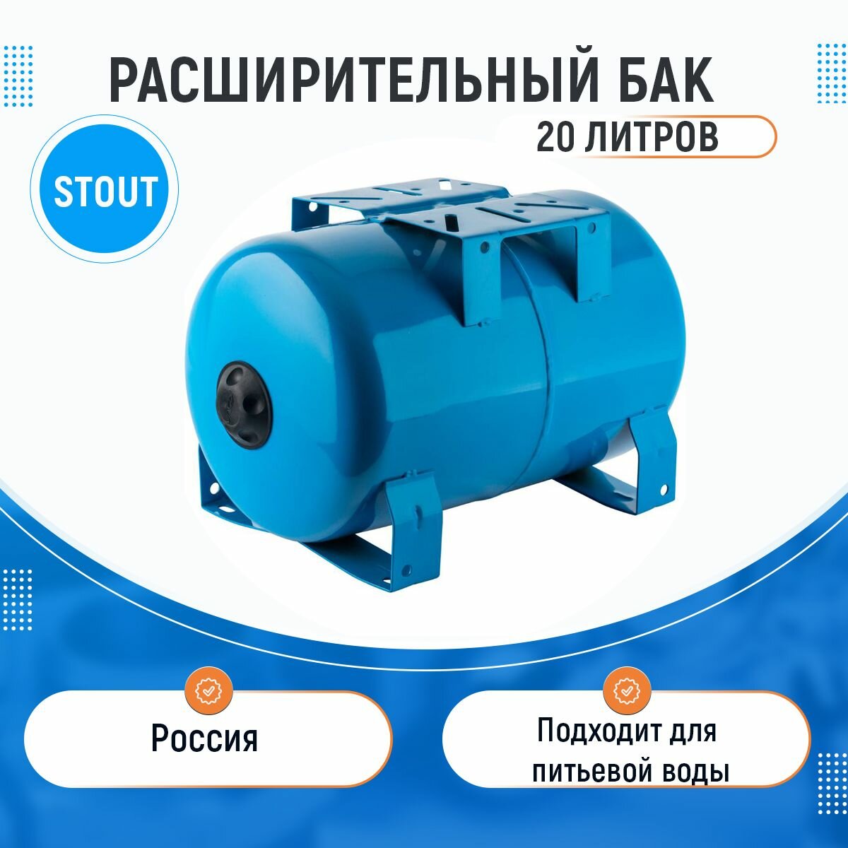 STW-0001-100020 STOUT Расширительный бак, гидроаккумулятор 20 л. горизонтальный (цвет синий)