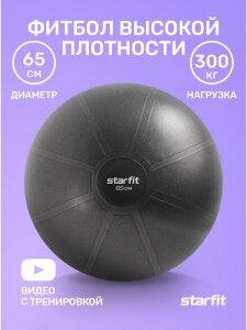 Фитбол высокой плотности STARFIT GB-110 65 см, 1200 гр, антивзрыв, черный