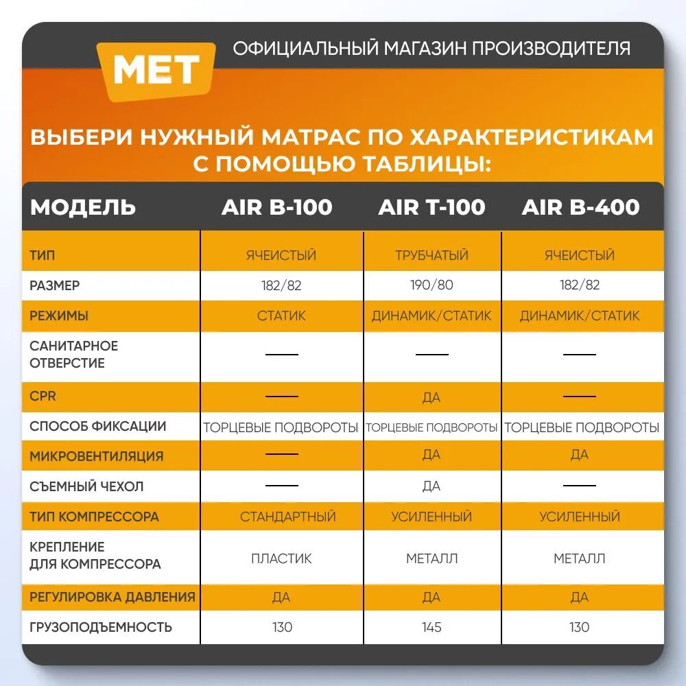Купить Противопролежневый матрас с алюминиевым компрессором, функцией статик MET AIR T-100 с функцией вентиляции