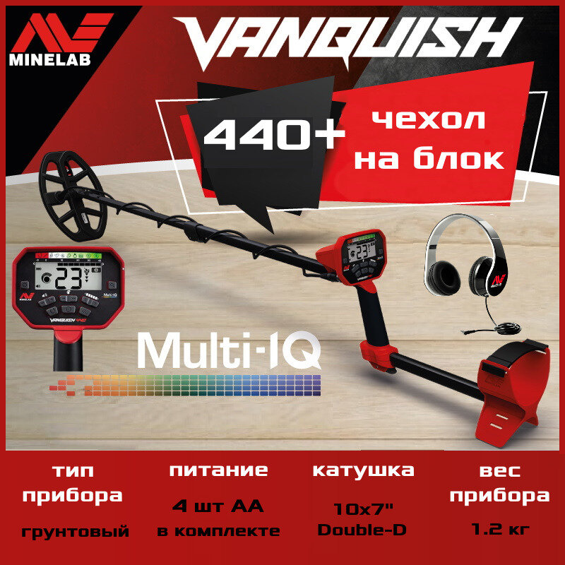 Металлоискатель Minelab VANQUISH 440 / минелаб ванквиш 440 / грунтовой металлодетектор для хобби, отдыха и туризма на природе, пляже / ручной с водонепроницаемой катушкой Double-D для поиска золота, монет, серебра, клада / для любителей, начинающих