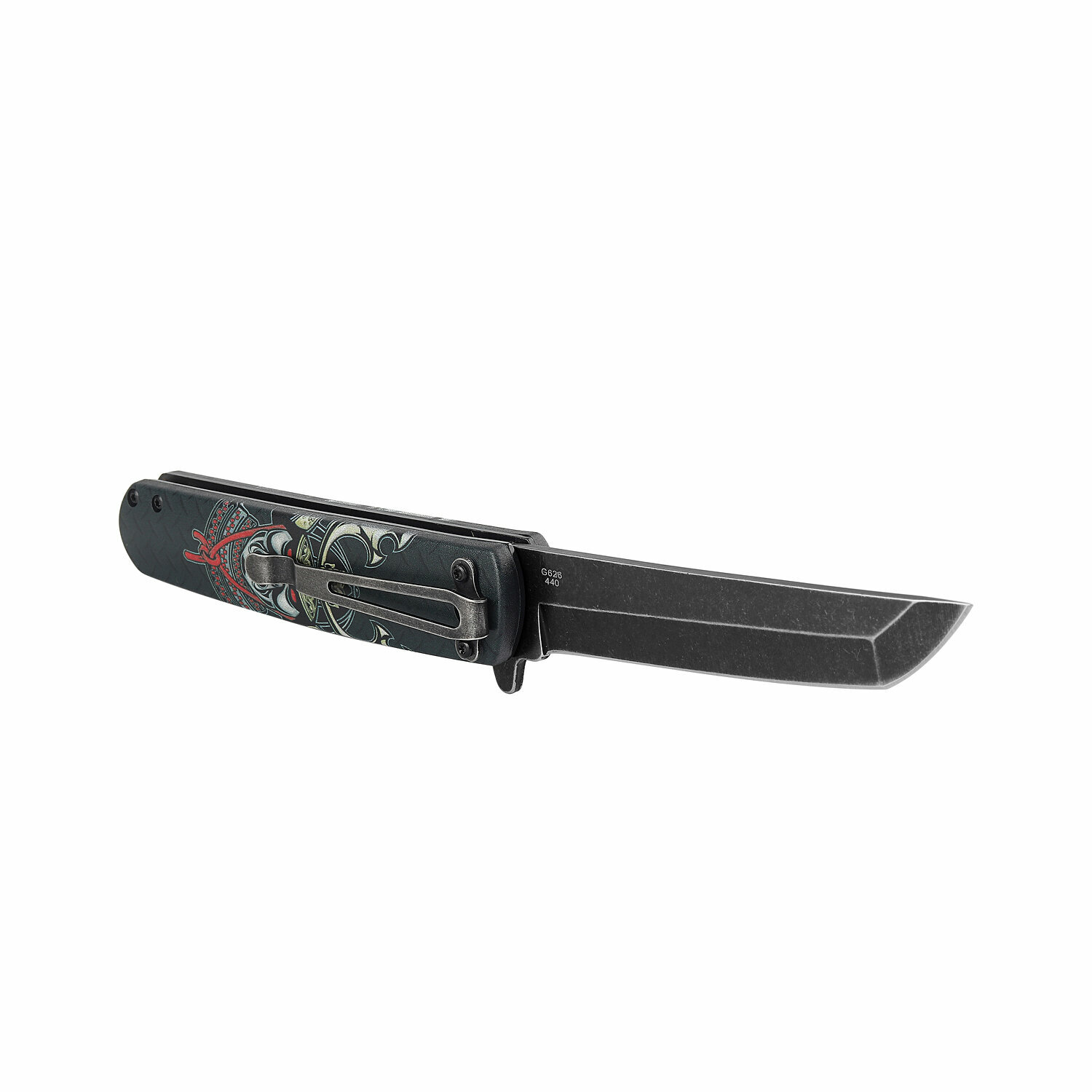 | Отзыв: | Давненько у Ганзо не было новинок, а здесь сразу такая красота. Дешево, красиво и круто, реально круто, так как форма не стандартная, а танто, рисунок это вообще отдельный вид искусства, и самое главное, он очень круто флипует, так как клинок с пружиной и очень легко открывается |