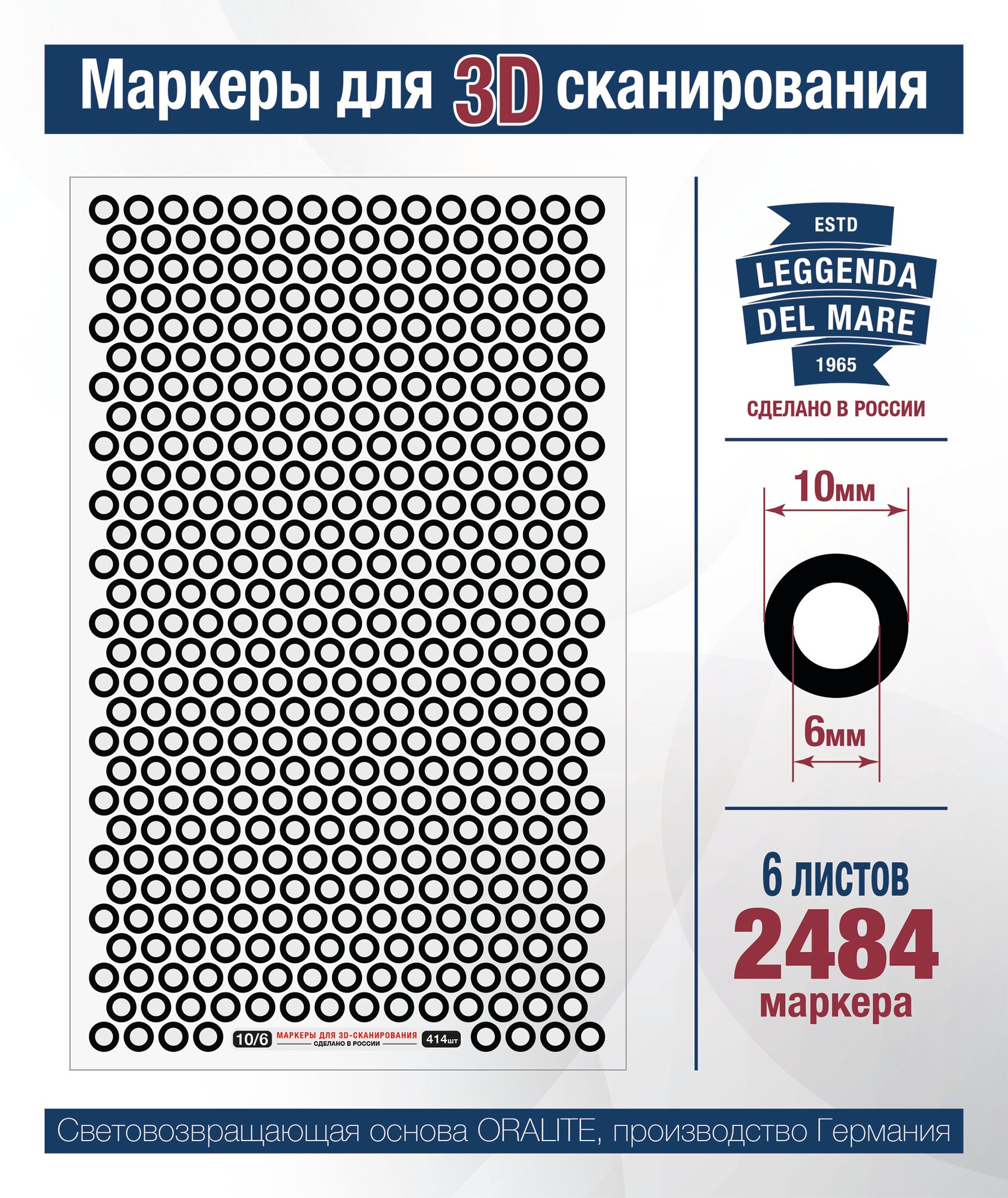 Купить Маркеры для 3D сканирования 10/6 мм, 6 листов