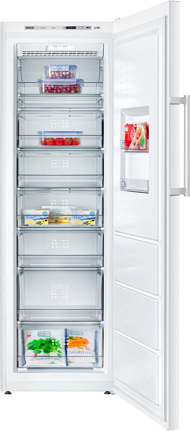 Очень довольна морозильником! Ящики в сочетании со стеклянными полками удобно!. Люблю лепить кучу вареников-пельменей-мантов. И предостаточно места для их заморозки. Считаю технику Атлант лучшей в своей ценовой категории. Сегодня купили холодильник 1602 -100 брат-близнец морозилке. Поставим рядом и будет Side-by-side |