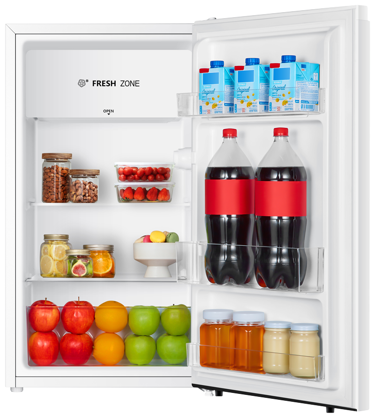 В дверцу легко помещается 2л бутылка воды. Для одного человека хватит, для двух уже точно нет, имейте в виду. |