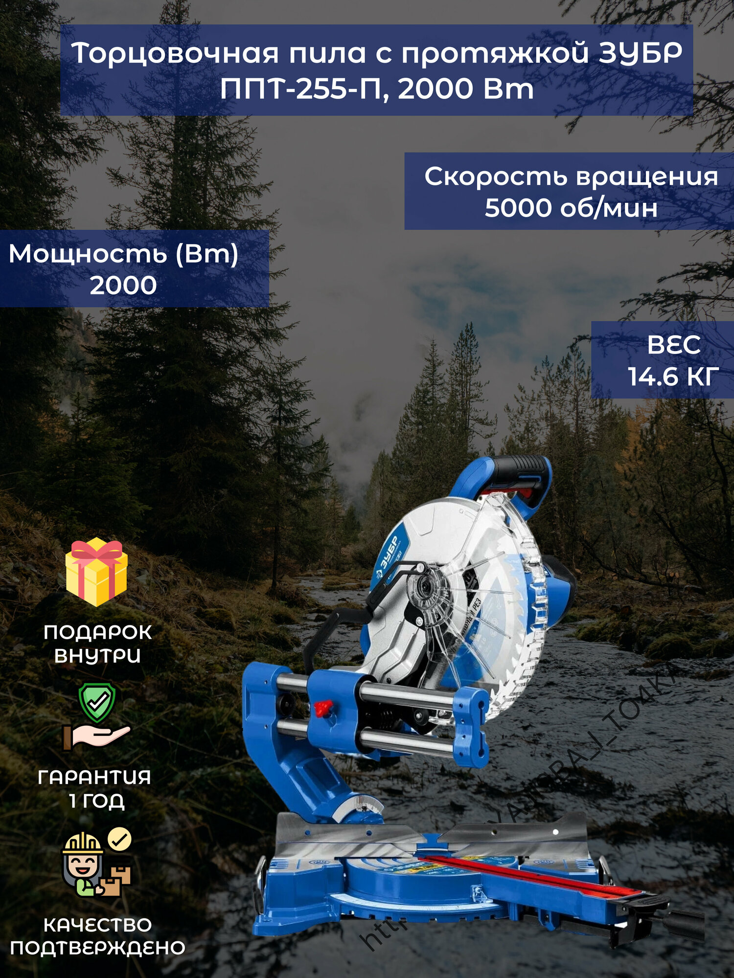 Купить Торцовочная пила с протяжкой ЗУБР ППТ-255-П, 2000 Вт