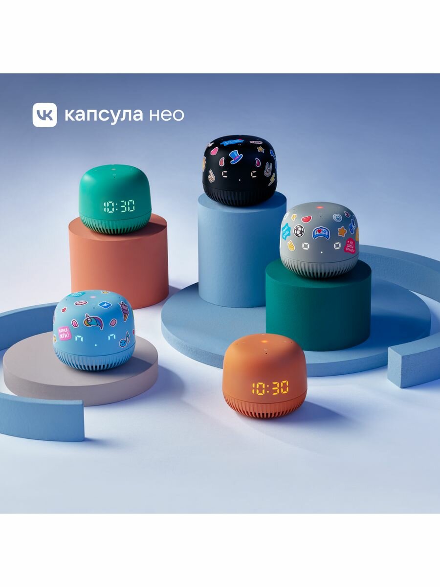Умная колонка Маруся мини, VK Капсула Нео (с часами) и наклейками цвет синий, 3 месяца музыки VK + Wink в подарок