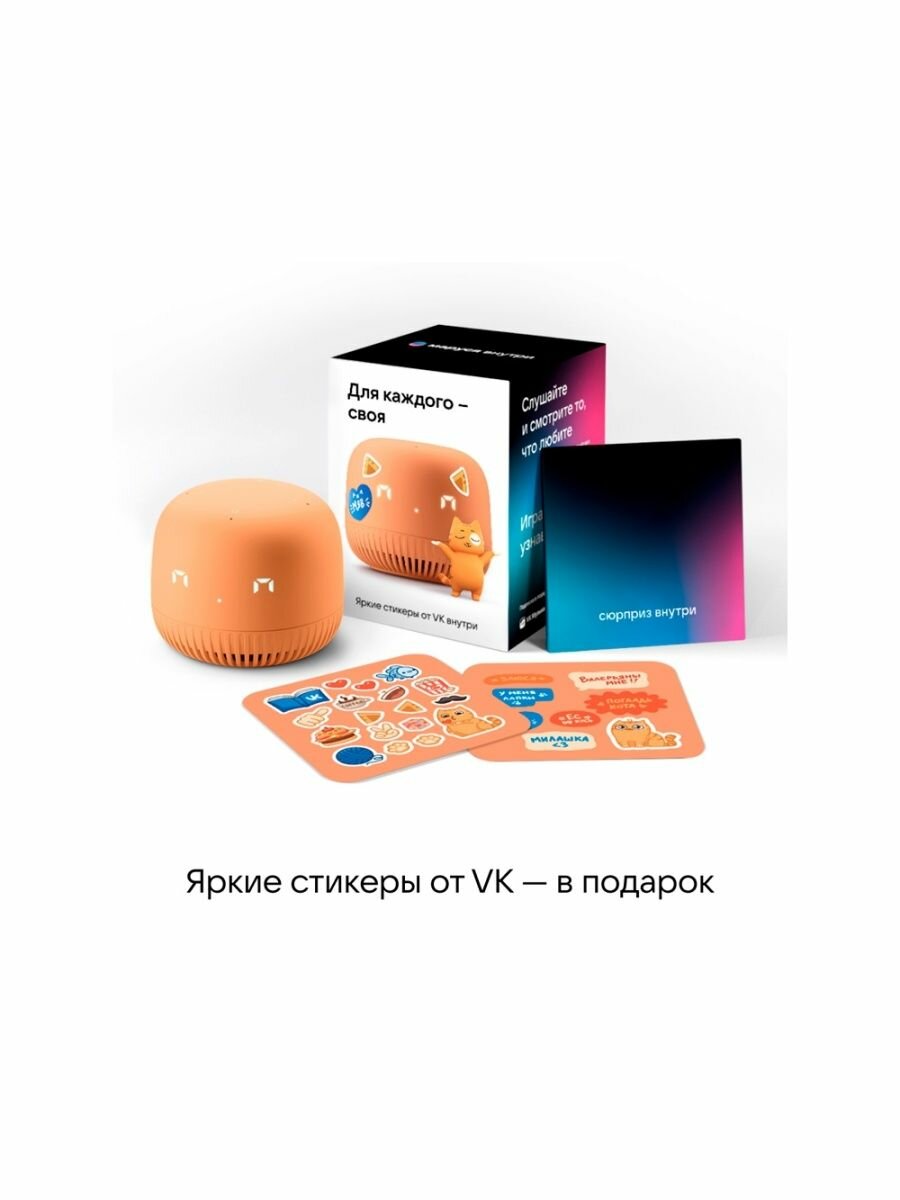Умная колонка Маруся, VK Капсула Нео с голосовым помощником, умная станция, цвет оранжевый, 3 месяца подписки VK + Wink в подарок