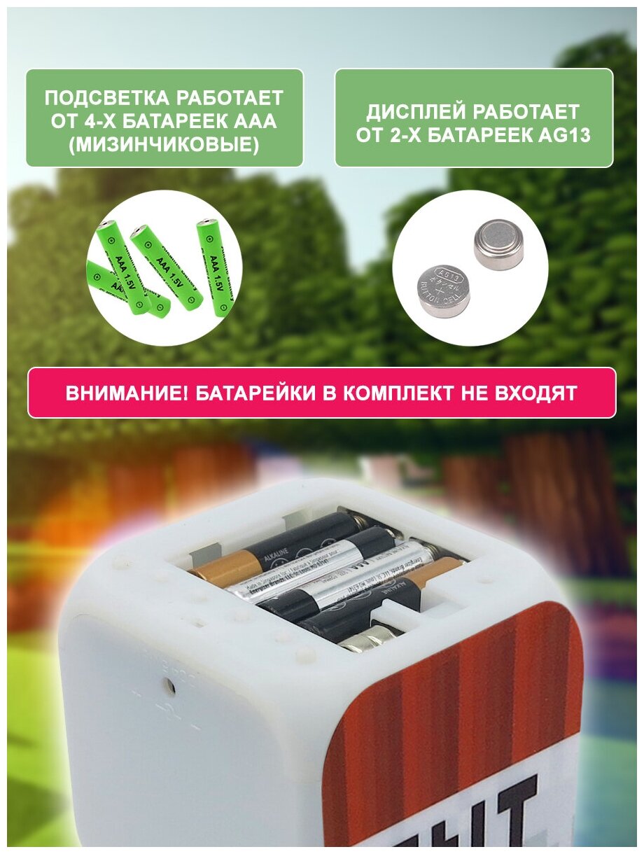 Часы-будильник хамелеон Майнкрафт "Блок ТНТ"