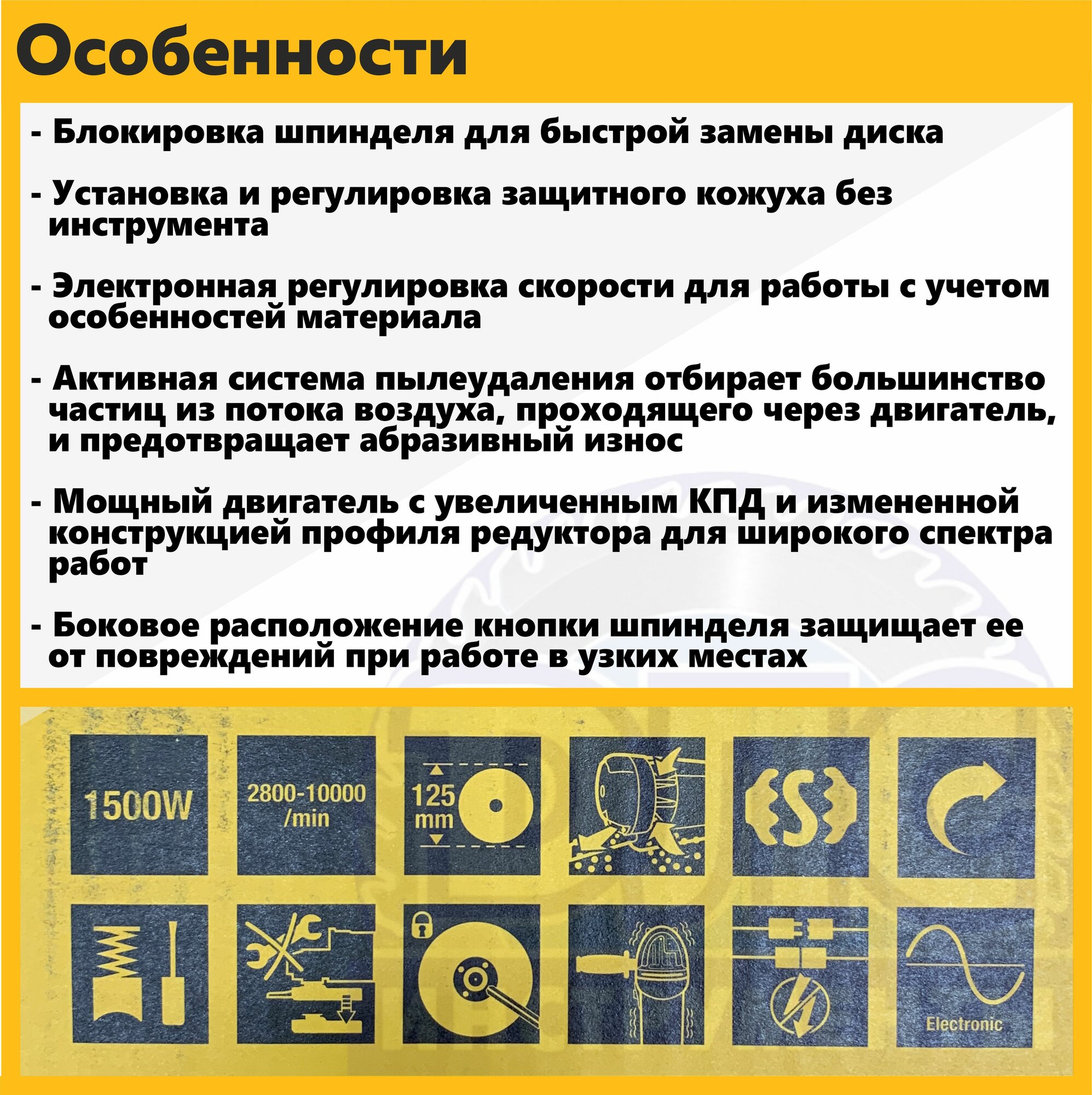 | Комплектация | УШМ, антивибрационная D-образная рукоятка, защитный кожух пылеудаления, чашка для шлифования, внутренний и наружный фланцы, спецключ, кейс TSTAK |