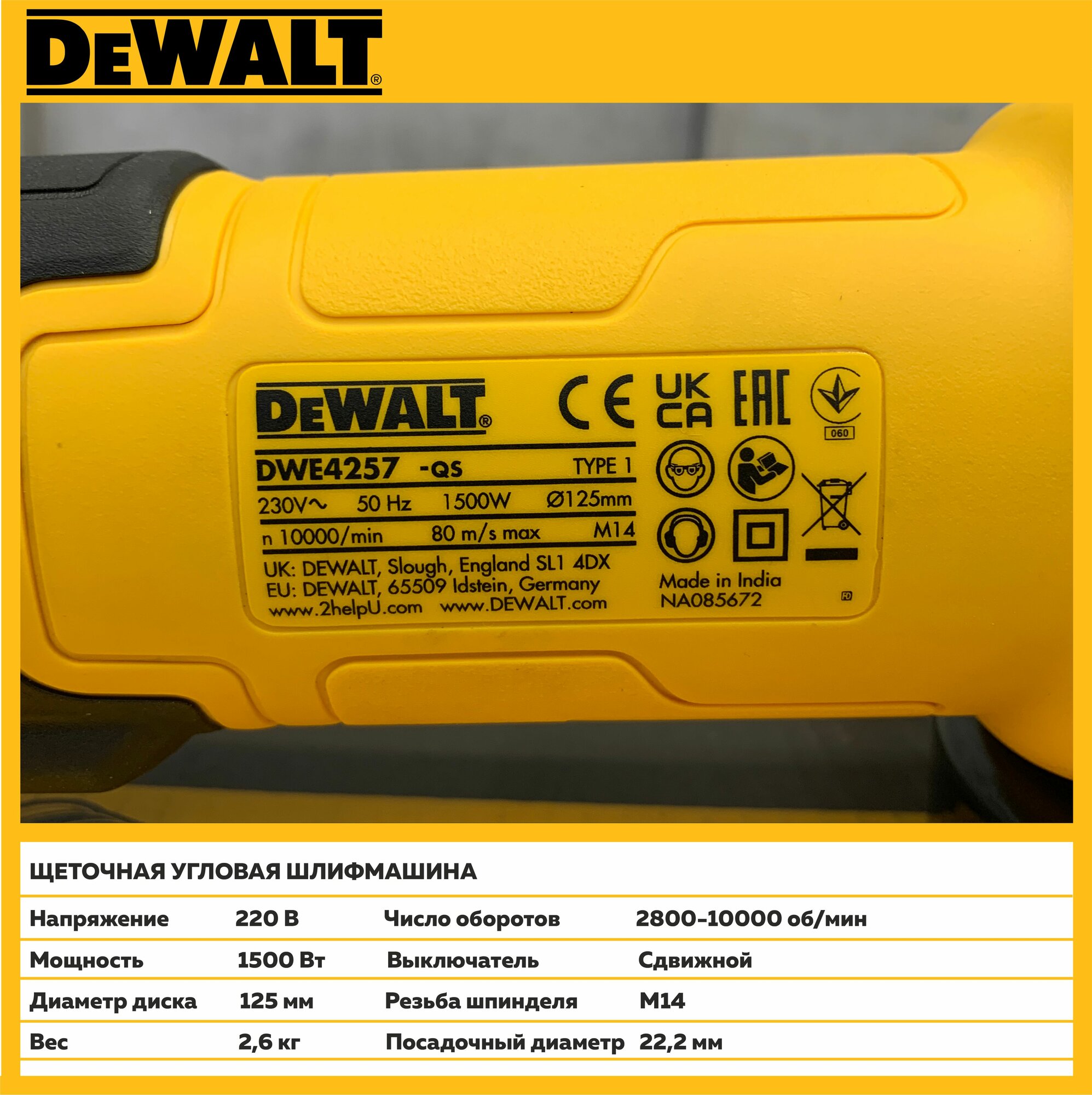 УШМ DeWALT DWE4257, 1500 Вт, 125 мм