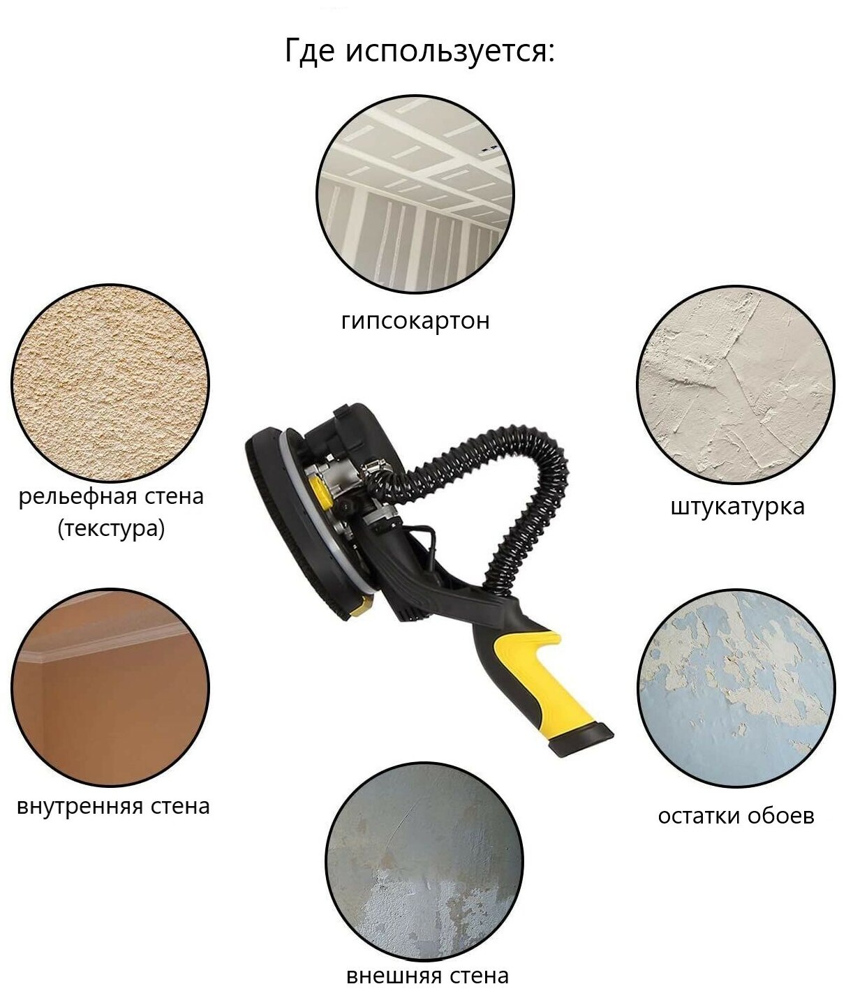 | Плюсы: | Быстро качественно весело, можно шлифовать высокие потолки и стены |