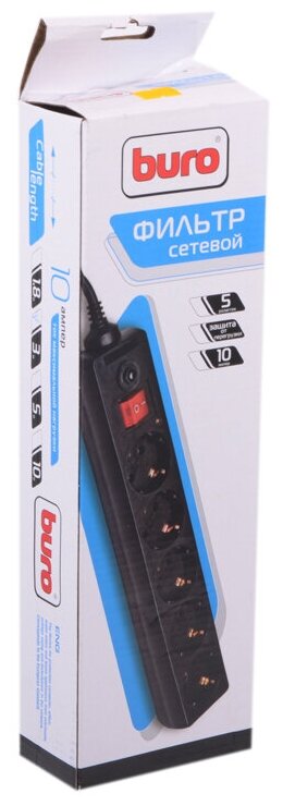 Сетевой фильтр Buro 3м (5 розеток) черный (коробка)