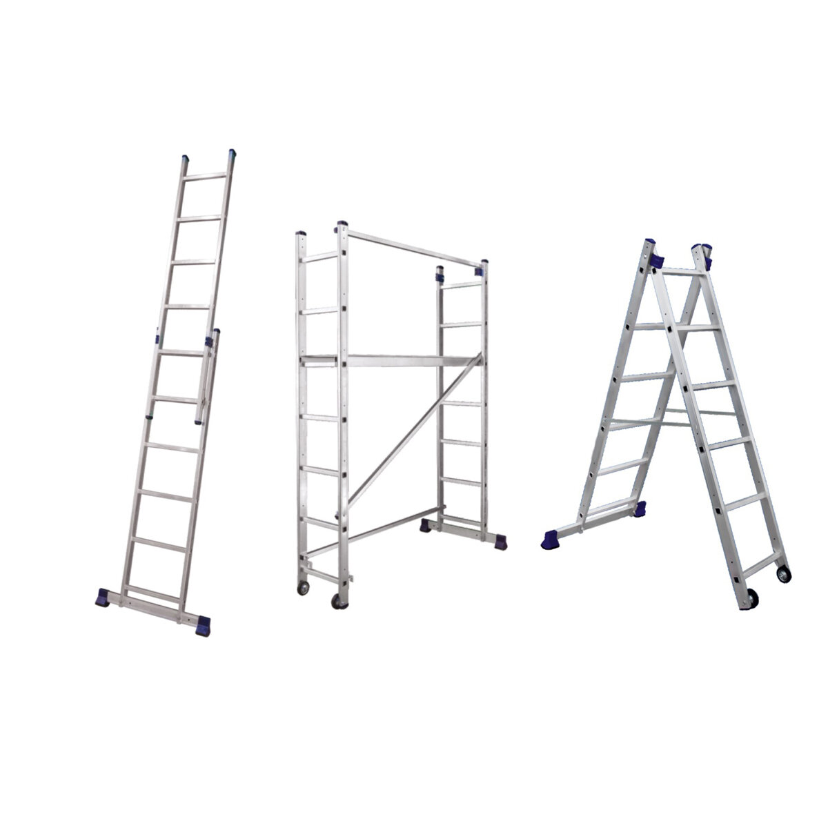 Новая высота Лестница-трансформер 3-х секционная 3×7 ступеней, 3×1,9 м, высота 4,5 м, нагрузка 150 кг, алюминий, новая высота