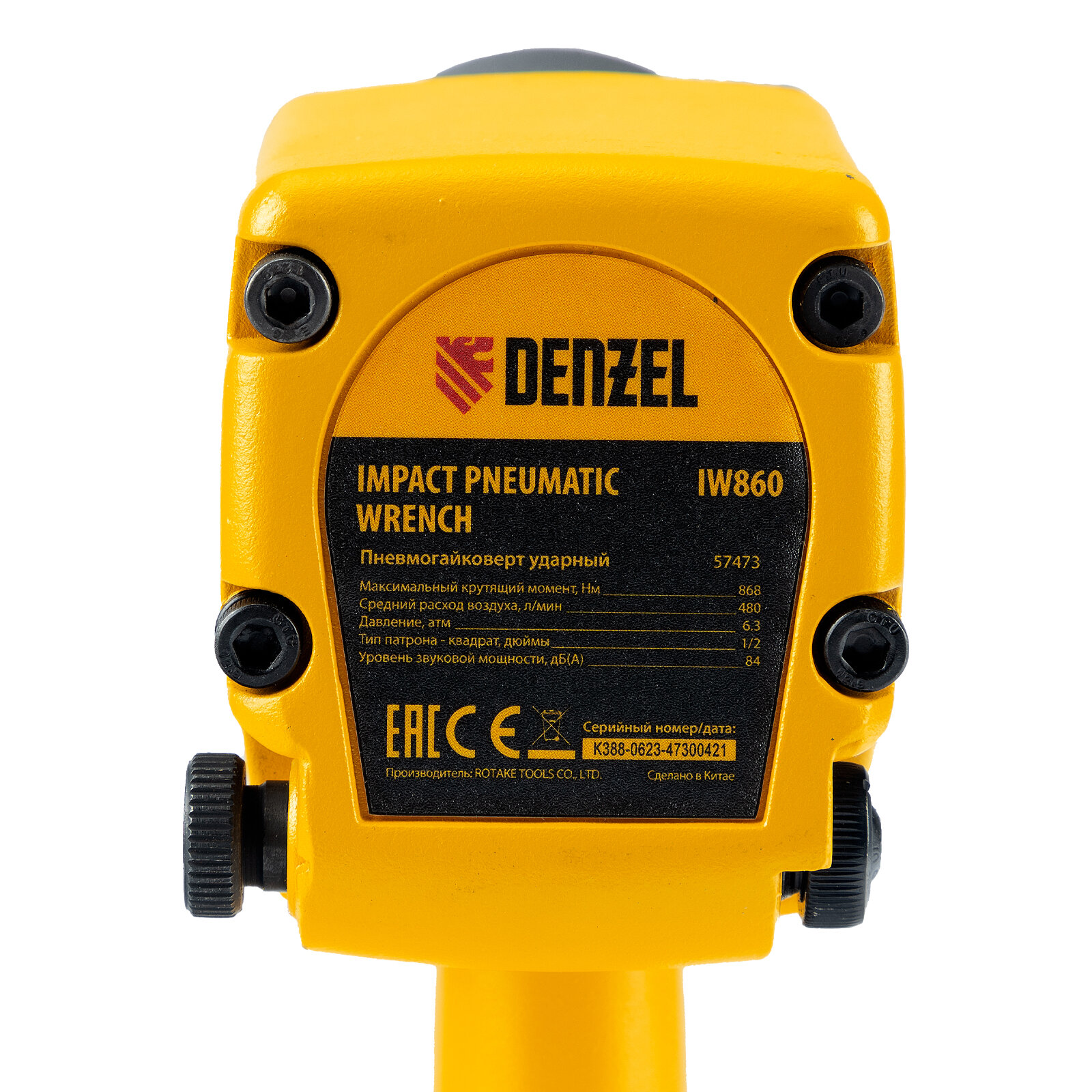 Ударный пневмогайковерт IW860, набор головок, 1/2 , 7000 об/мин, 868 Нм Denzel 57473