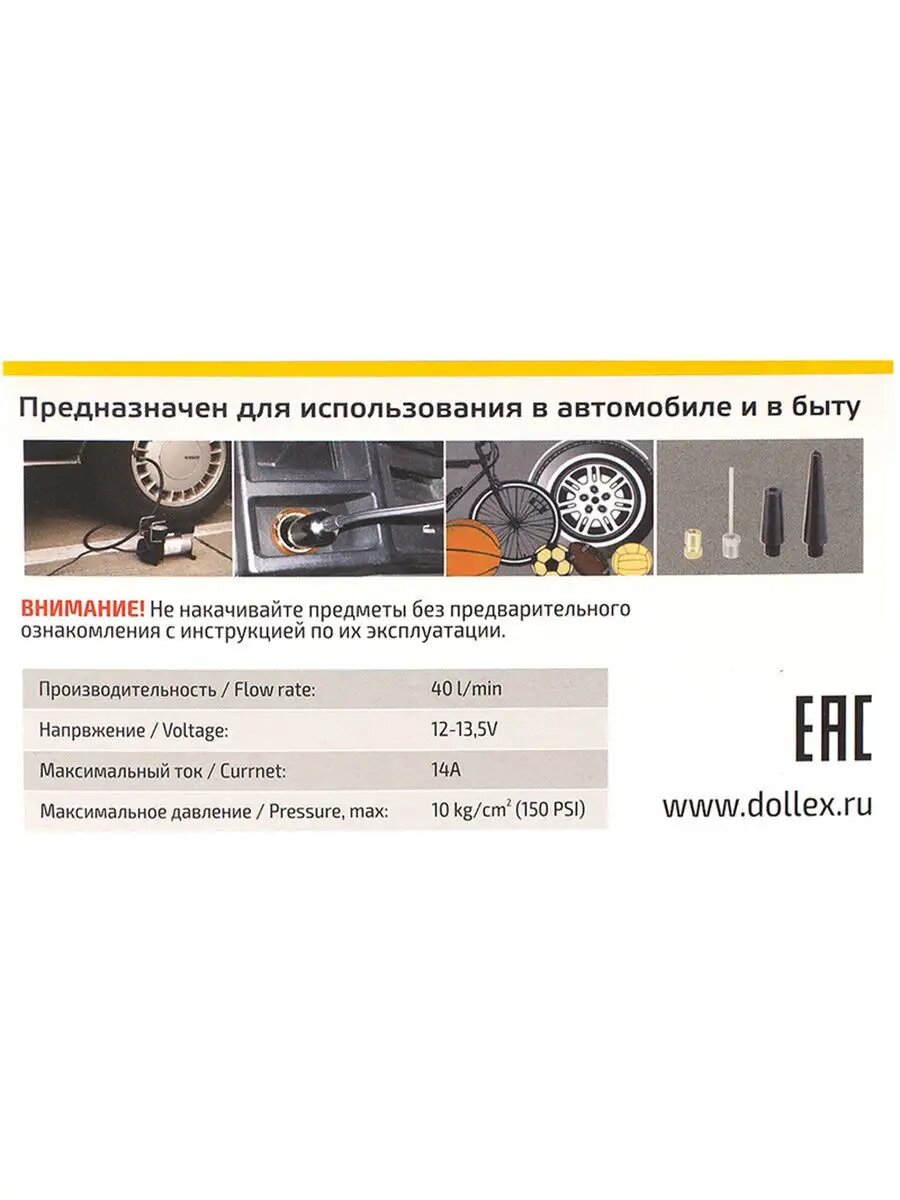 Ниже Вы можете прочитать отзывы на Компрессор DolleX 12V, 14 A, 10 Атм, 40 л/мин, предохр-ль, фонарь, сумка, ознакомится с подробными характеристиками, посмотреть интересные обзоры и фотографии на Компрессор DolleX 12V, 14 A, 10 Атм, 40 л/мин, предохр-ль, фонарь, сумка.
