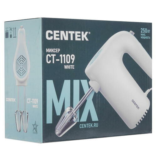 Купить Миксер Centek CT-1109 (белый) 250Вт, 5 скоростей, взбивание /замешивание, экологич. корпус