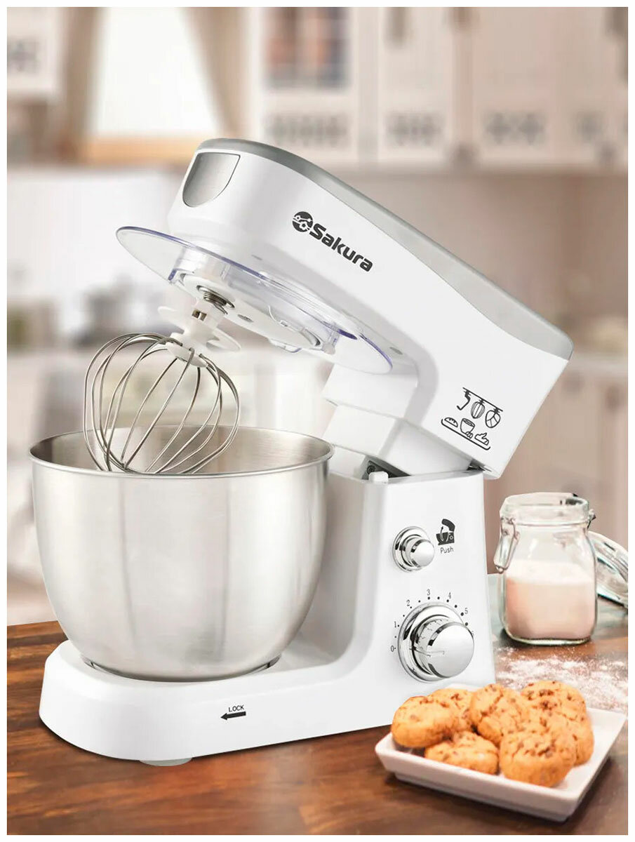 Миксер электрический Sakura SA-6327W планетарный 1000Вт 3,5л 6 скоростей