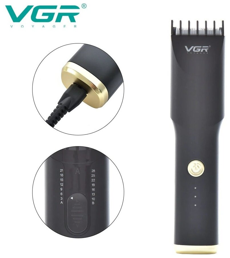 | В комплекте | кабель USB / Профессиональная машинка для стрижки волос VGR V-230; 2 регулируемые насадки: А (3-21 мм) и В (10-28 мм); USB-кабель; Техническое масло; Щеточка для очистки |