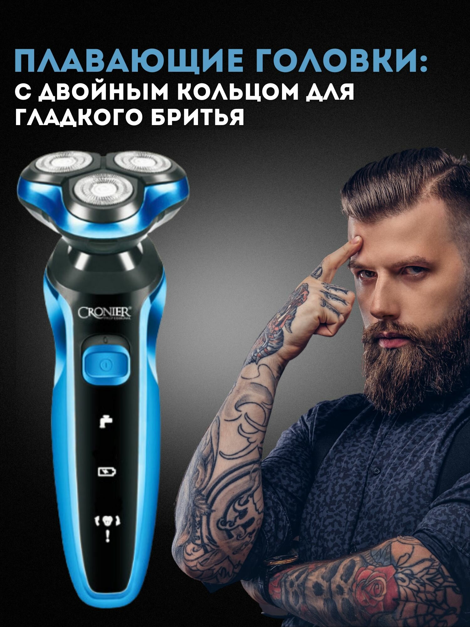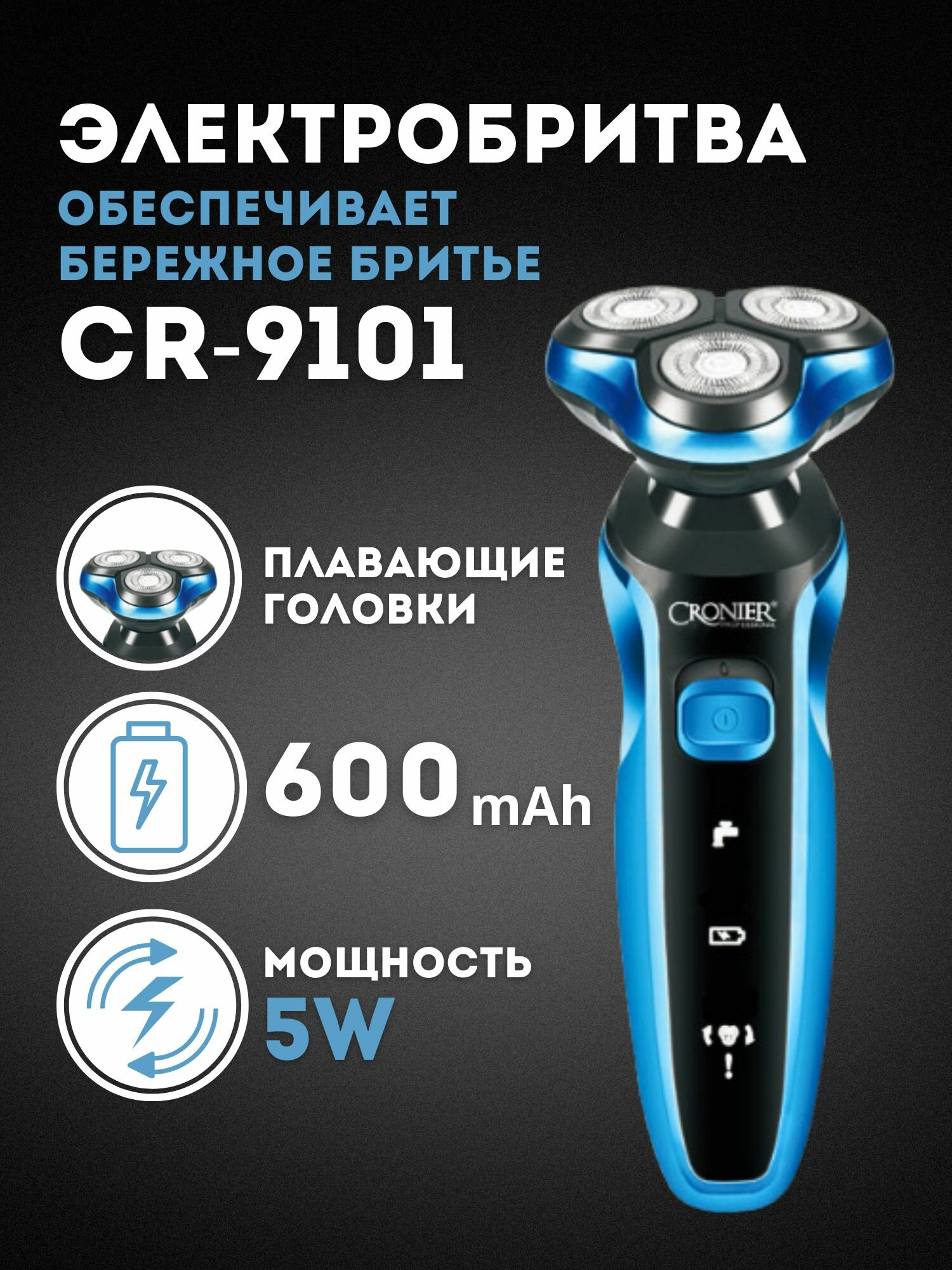 Электробритва для влажного и сухого бритья Cronier CR-9101 с плавающими головками