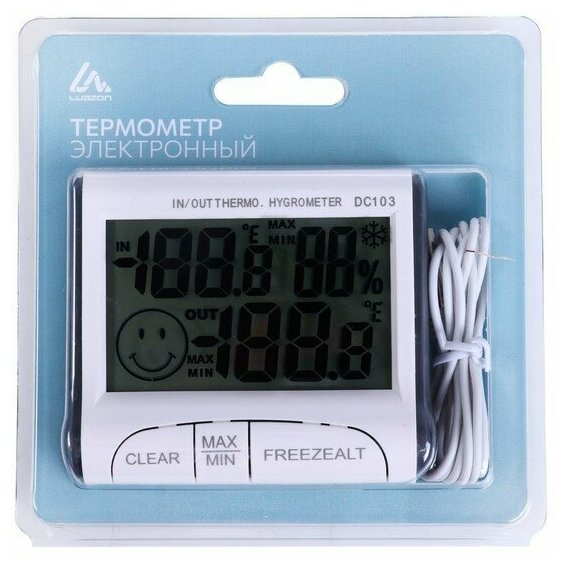 Термометр Luazon LTR-15, электронный, 2 датчика температуры, датчик влажности, белый