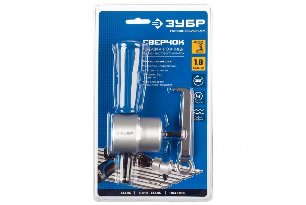 ЗУБР сверчок насадка-ножницы для реза листового металла, на карточке.