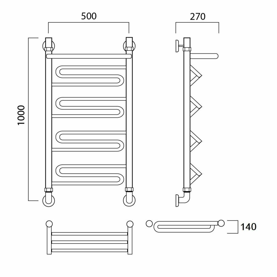 Водяной полотенцесушитель Акванерж зиг-заг с полкой 1200x500 интересное: