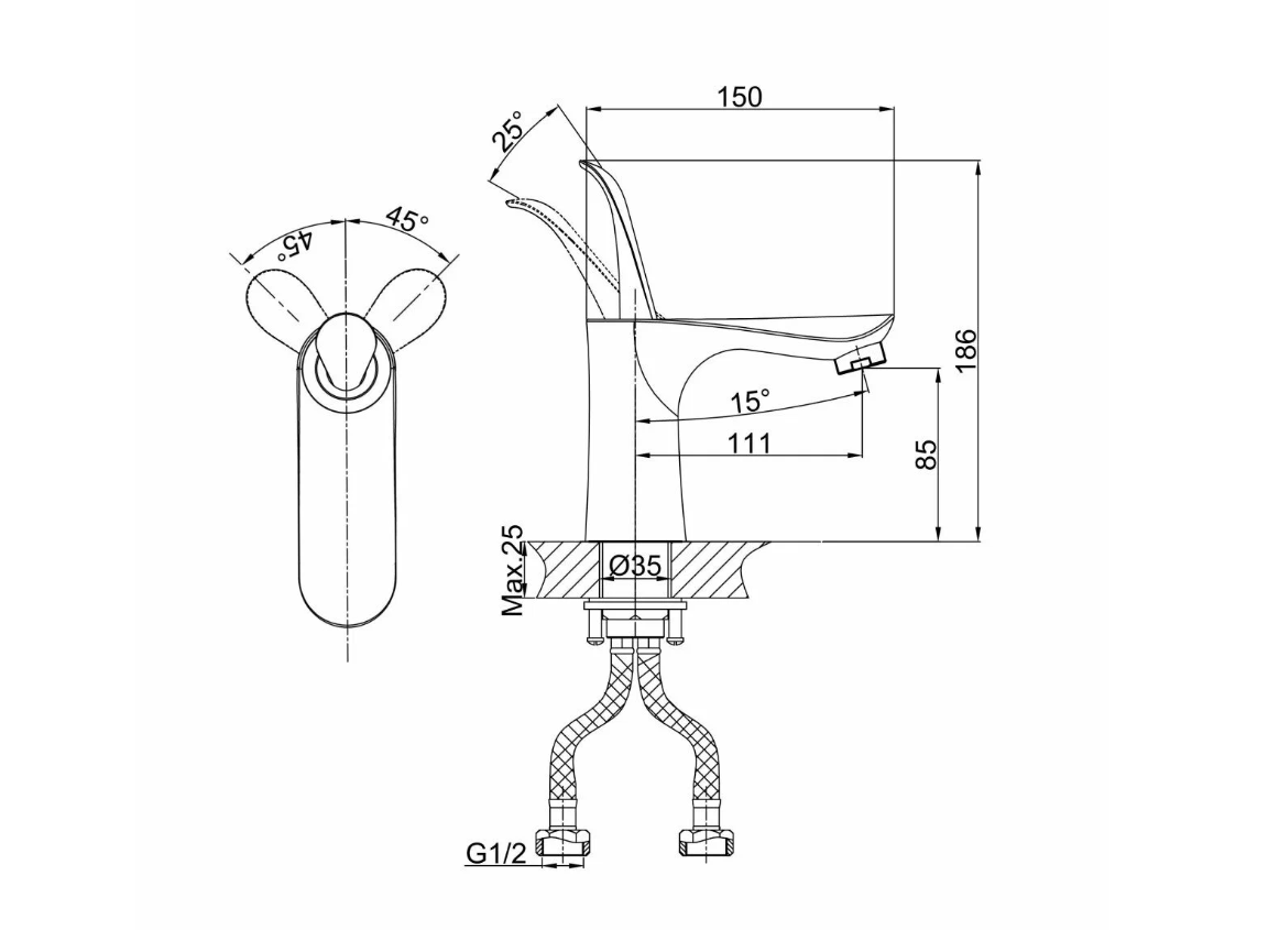 | Угол поворота рукоятки вертик. | 25 градусов |