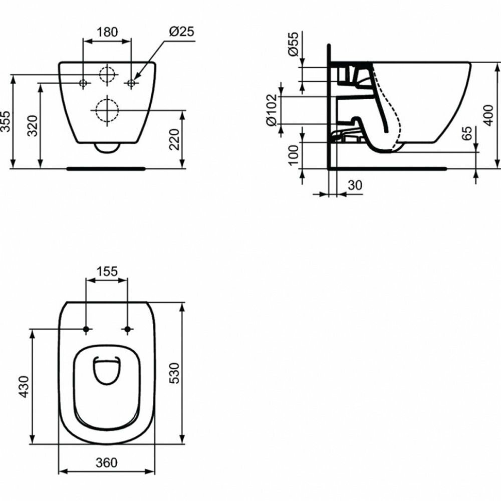 | Дополнительная информация | Подвесной унитаз, Глубокий смыв, Сидение и крышка T3528V3 или T3527V3 заказывается дополнительно, С крепежом TT0299598 (для полностью скрытого монтажа), Технология Aquablade |